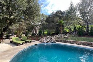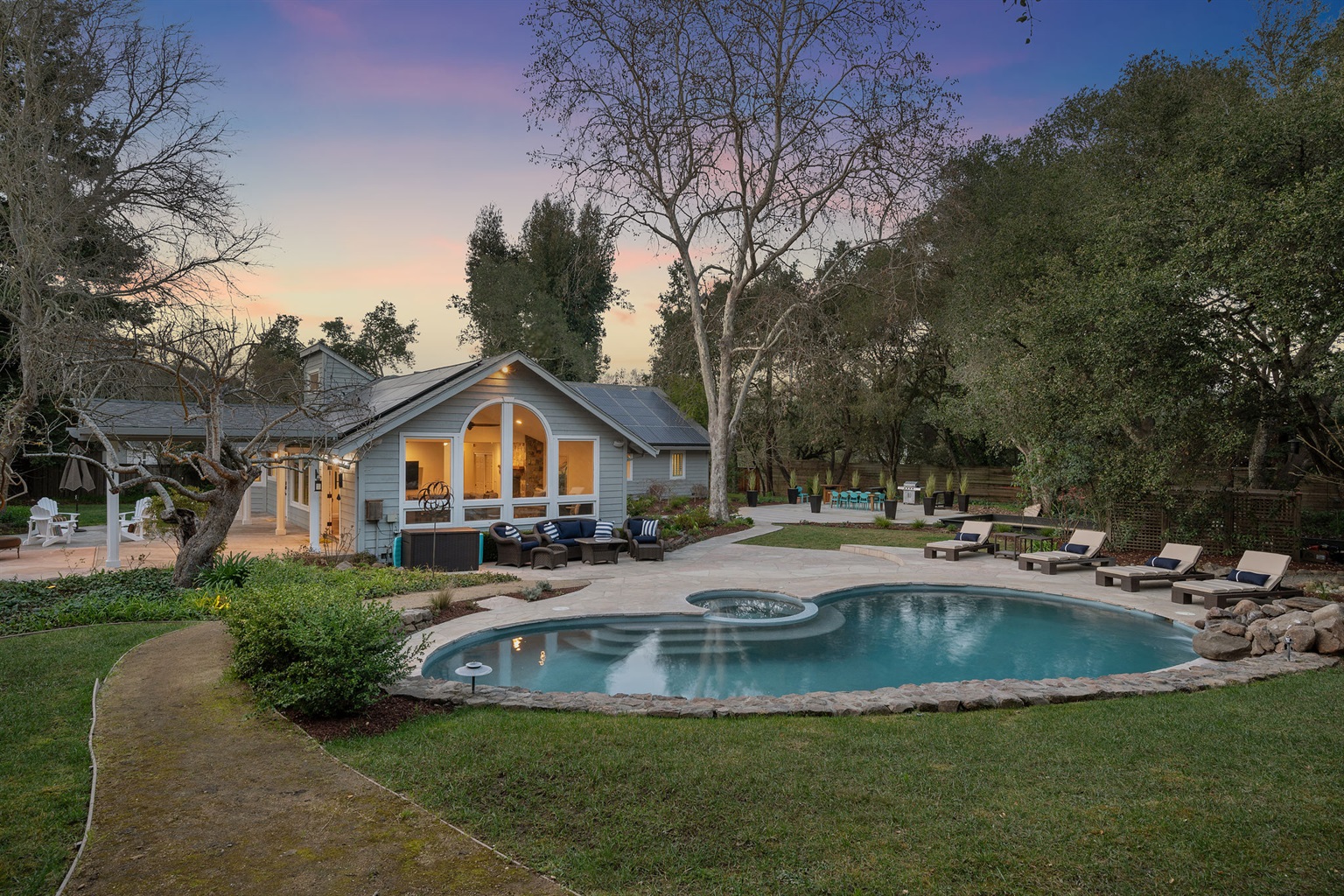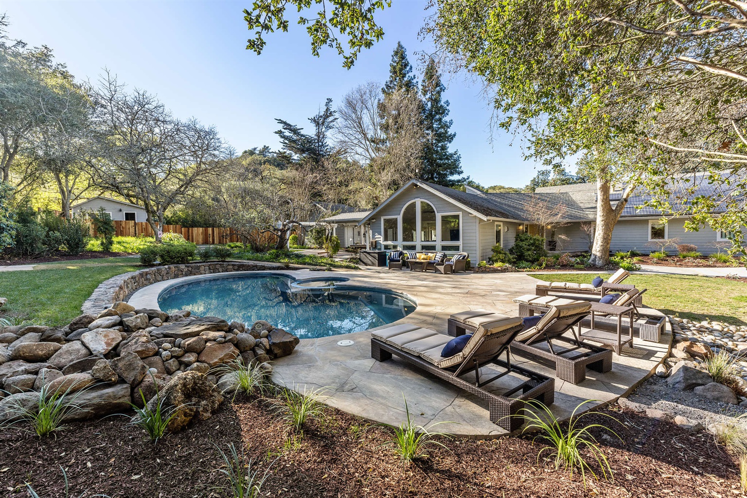 Outside: The large, flat grounds for this home have something for everyone. The newly remodeled saltwater pool is gas-heated to be comfortable all year. An attached spa is perfect for those wanting temperatures in the 100's. There is ample space around the pool for lounging or curling up on a couch. The rock river and falls is the perfect meditative backdrop.